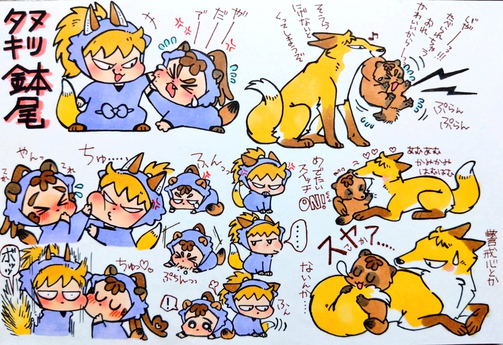 タヌキツ鉢尾 rkgk ⚠️ケモ化 ⚠️なんでも許せる人向け カプ絵描きなれてないから優しい目で見てね(՞. ̫ .՞)💦