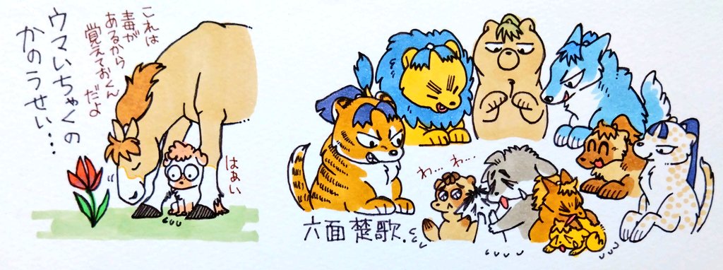 ⚠️ケモ化 馬は擬獣化の汎用性が高い之図 🐴🍡◻️🎋⚡🐝🐴