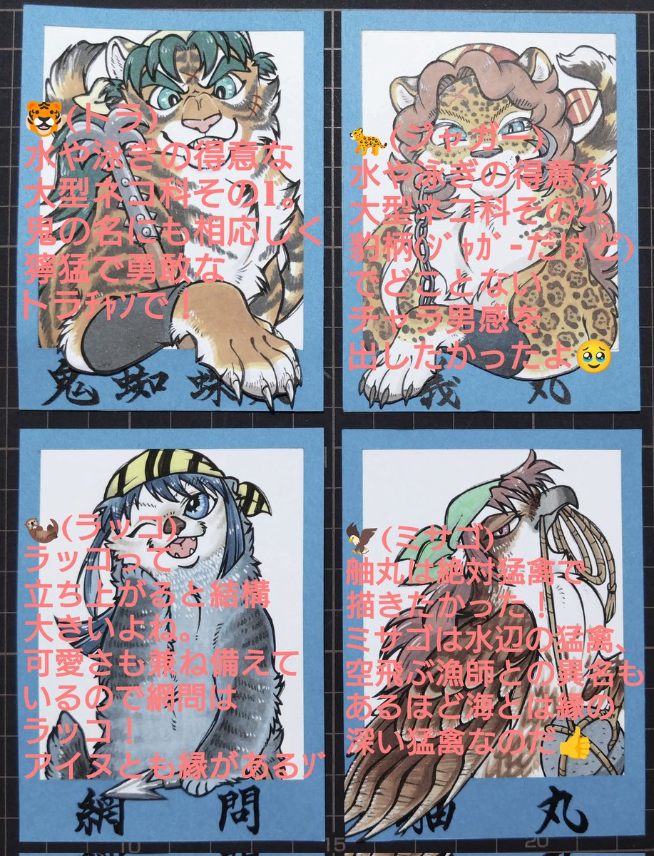 9 60 ⚠️ケモ化 額縁シリーズまとめ③ 🌊軍は水にまつわる生き物で✍️ 他にもスナドリネコ(漁猫)やカワウソ、ペンギン、クマ、海獣類なんかで他の🌊軍キャラもいつか描いてみたいな…… いつか……(いつか) 特に読まなくても大丈夫なケモコンセプトは画像4枚目にて🐾 23/06/29 21:53