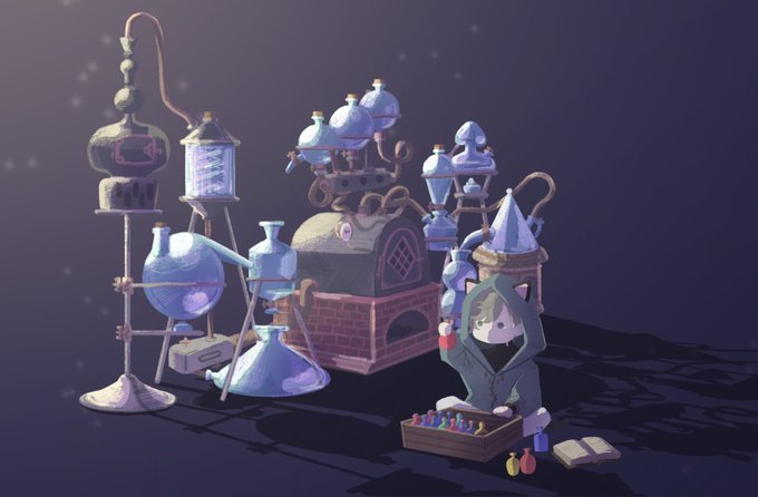 夜な夜なポーションを作る おにーさん #かな絵