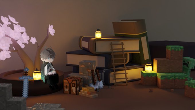 93 833 最近練習してるblenderで、甲斐田くんの机の上をマイクラっぽく作った。頑張った!! #描いた晴 #サムネ甲斐田 23/03/05 19:29