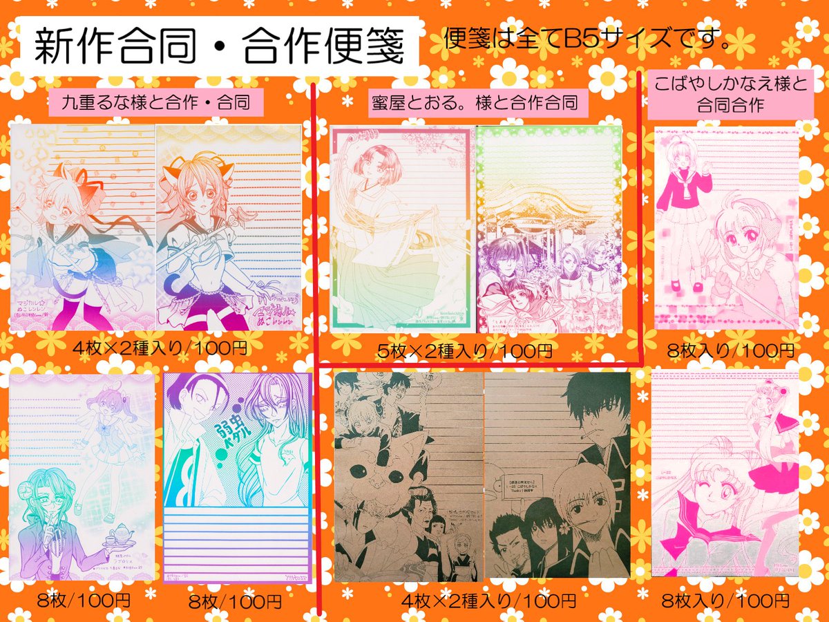 #みんなのおもいで同人祭 サークルカット&お品書きです!お品書きに入り切らなかった便箋見本も。新作たくさんあります~! スペースNo.い4/半径6mmです。よろしくお願いいたします(∩´∀`)∩ 会場pictsquare.net/mt3t3qfugnd91q…