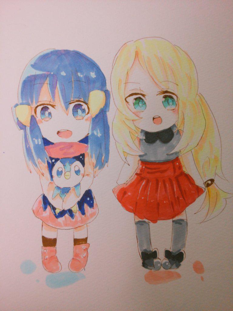 #ポケモントレーナー版深夜の真剣お絵描き60分一本勝負 めっちゃ遅刻… ヒカリちゃんとセレナちゃん共演したら良いのになぁと思ったので!!