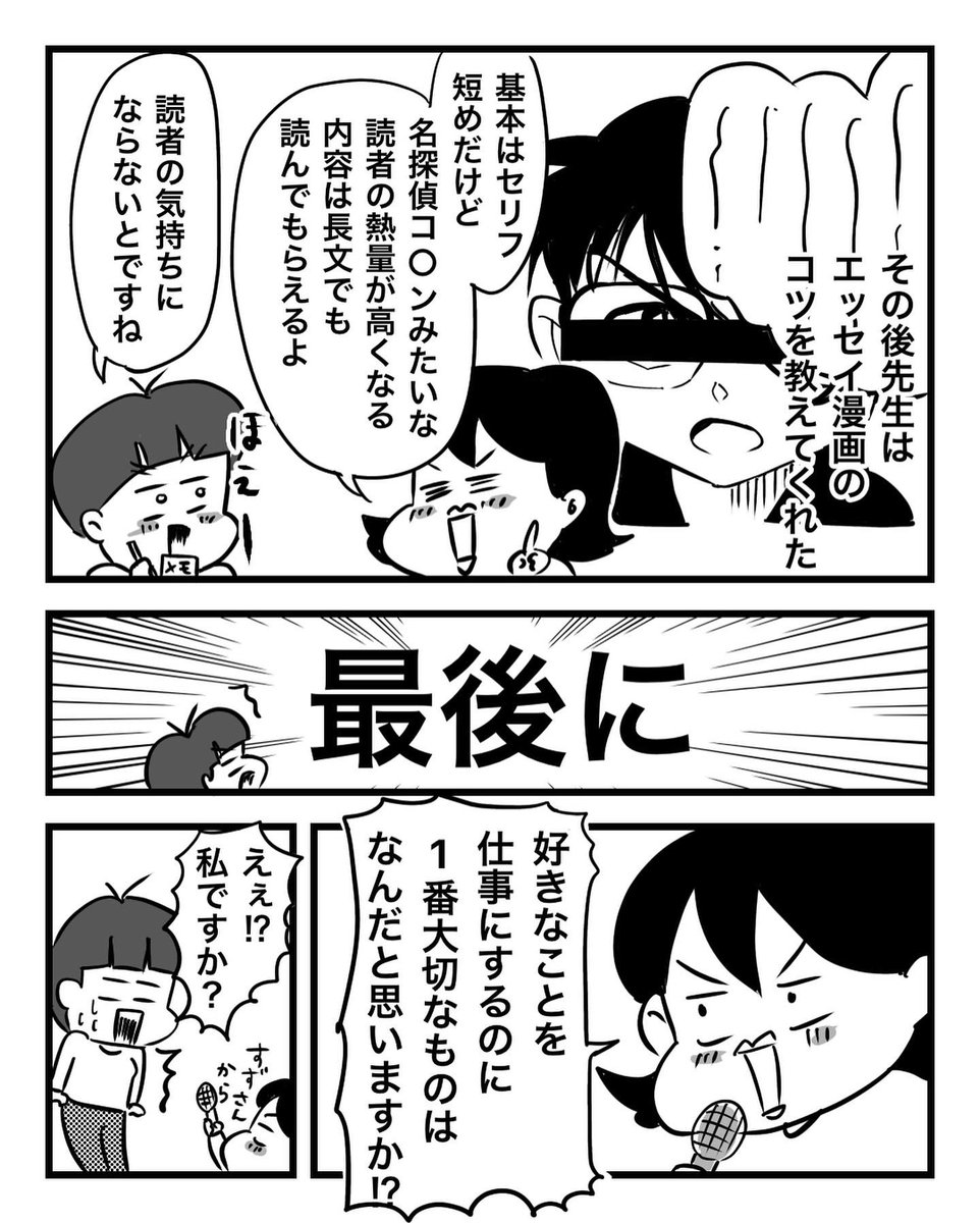 好きなことを仕事に!!第3話 1/2 若林杏樹先生 @wakanjyu321 とTwitterスペースでお話ししたときの漫画です🥰 あんじゅ先生ありがとうございました🙇♀️✨ #漫画が読めるハッシュタグ #フリーランス #イラストレーターさんと繋がりたい #エッセイ漫画