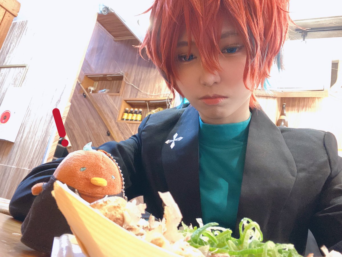 #アコスタ道頓堀 改めまして、本日はお疲れ様でした〜🍵 withたこ焼き自撮りチャレンジをしてたのですが、何度撮っても不服そうな顔になる独歩でした🐥 お声掛けしてくださった方々に感謝です🙏