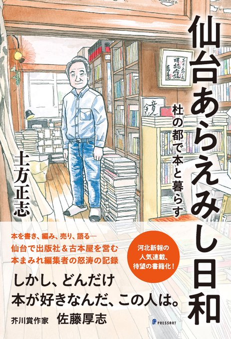 【お知らせ】書籍の装画を描きました。 「仙台あらえみし日和」土方正志著(プレスアート)、6月23日(金)発売です。仙台で出版社、古本屋を営む土方さんが自身の本まみれの日々を綴った、河北新報の人気連載エッセイの書籍化です。 kappo.machico.mu/books/8367