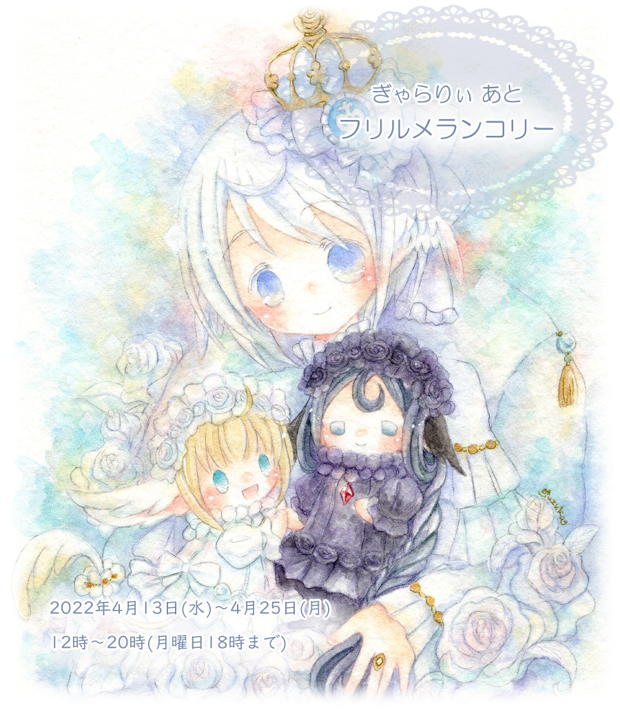 ぎゃらりぃあと様 ( @Ato10Gallery)の公募展「 #フリルメランコリー 」に額装作品8点とドローイング2点で参加させて頂きます…! 🎀会期:2022/4/13(水)〜25(月) 🎀時間:12時〜20時(月曜日18時まで) 🎀場所:ぎゃらりぃあと様(大阪) どうぞ宜しくお願い致します☺️