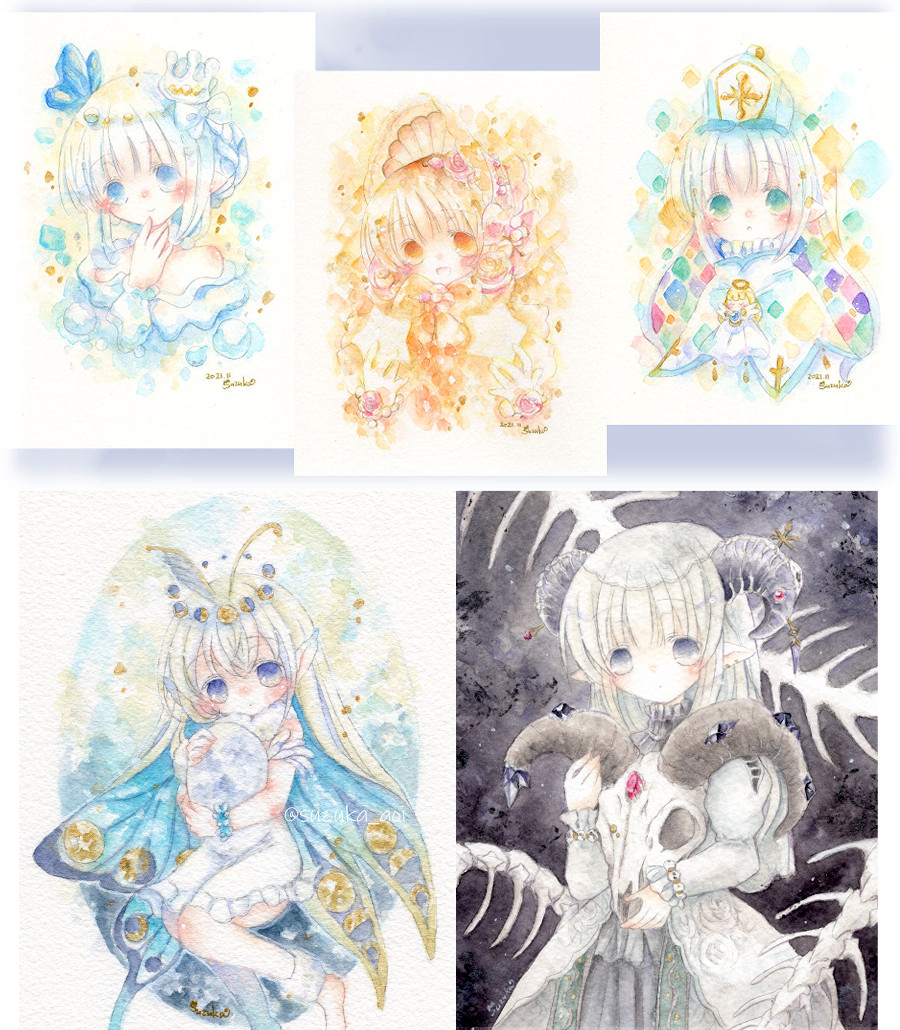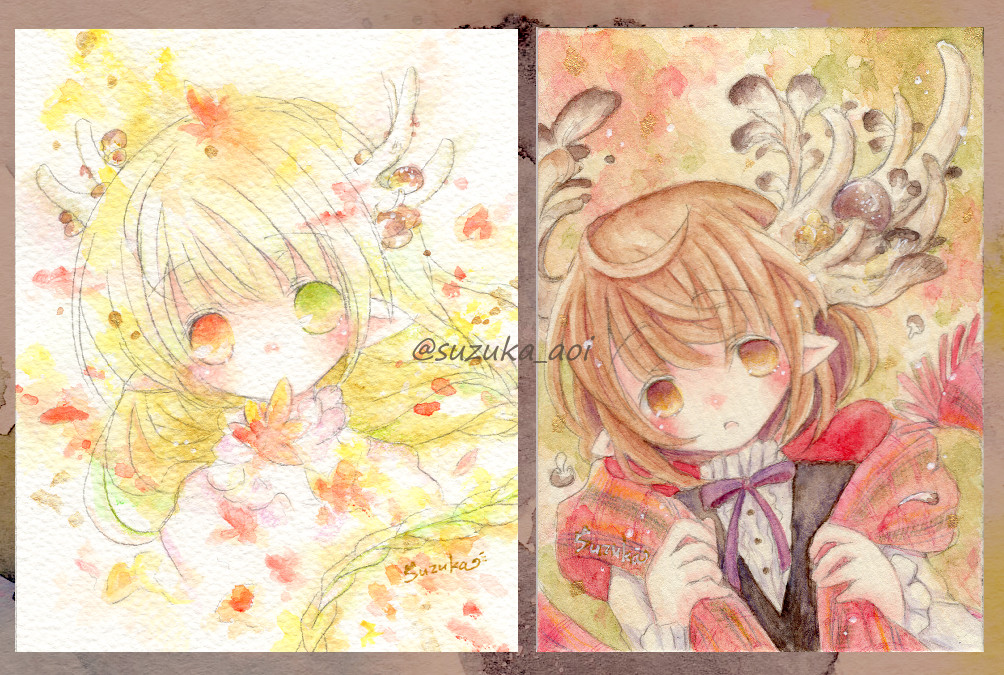 #フォロワー一万人以下の絵師が力作を投稿してたくさんのフォローを貰うタグ タグ失礼します。透明水彩で、こんな感じの子たちを描いております☺️どなたかの心にちょこっとでも刺さってくれたら嬉しいです🥹