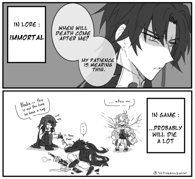 Blade : "the new recruit's asking the weirdest thing.." Kafka : "hmm? such as?" - #honkaistarrail #blade #SilverWolf