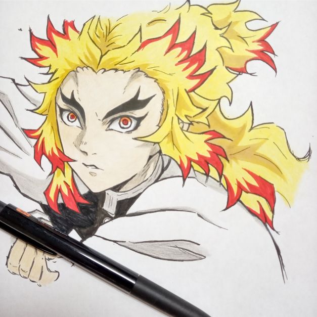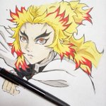鬼滅好きな姪っ子のお誕生日に間に合った😅 喜んでくれたみたい😊🎉。 文字無しの方を載せとく。 #イラスト #煉獄杏寿郎 #鬼滅の刃イラスト #お絵描き