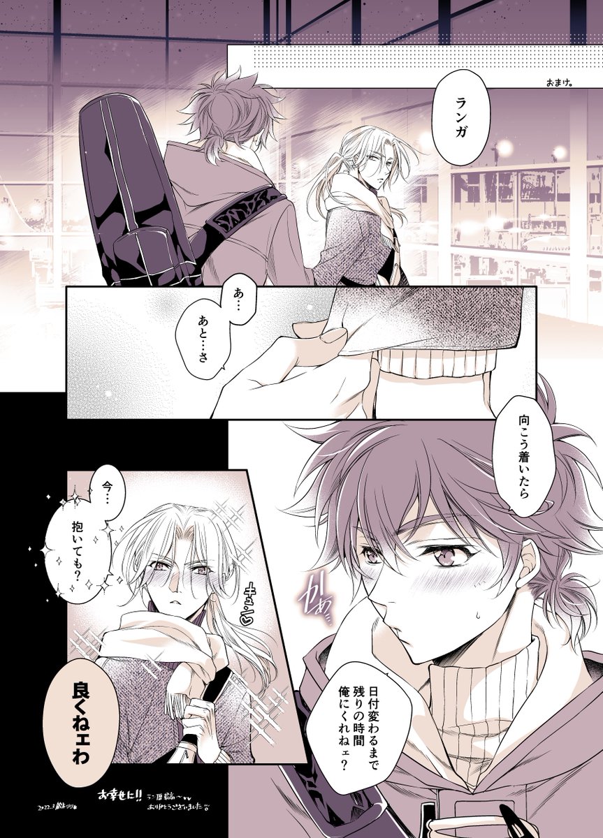 14 49 明日素敵ブックを拝見出来るの楽しみに原稿頑張ってます!!! 🌺🌺めちゃ楽しく描かせていただきました💕 #暦暦アンソロ_KYANKYAN 23/02/11 21:46