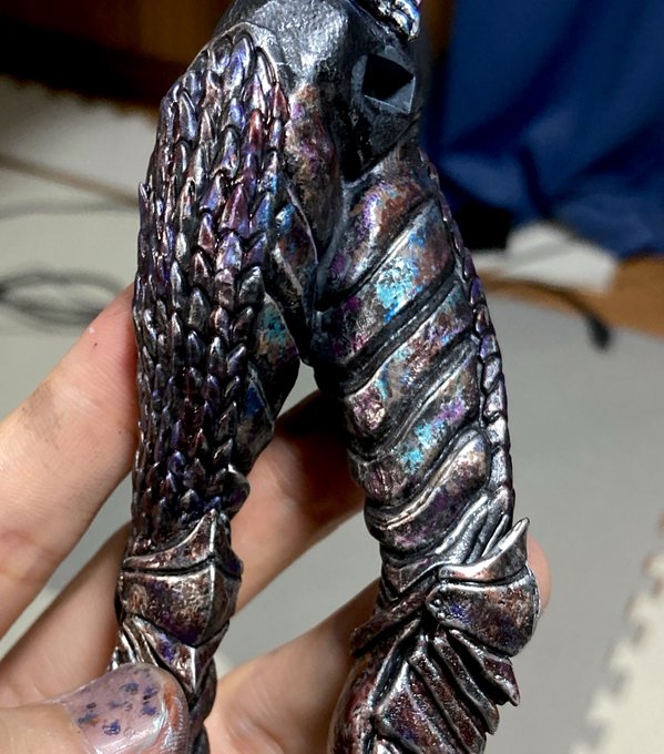 yoshiさんのティシー塗装はサフ状態からここまでで7時間くらいです。このあともう少しだけ調整しました。 ガレキに慣れてない方の場合、黒と銀と白だけでもカッコよくすぐに塗れると思います!#ELDENRING