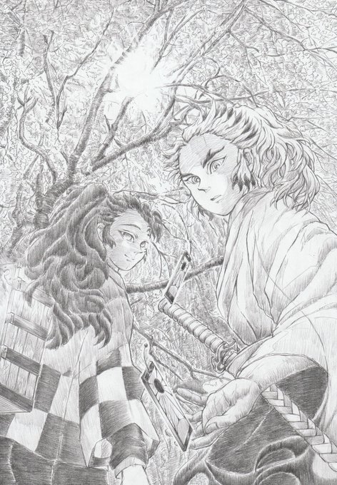 「逡巡の迪」 久々にイラスト描いたよ😚💖 やっぱりヨリチはいいわ〜 先代🔥柱さんは表情が良いよね☺️🫶 短編コピー📖の表紙予定です☺️👍