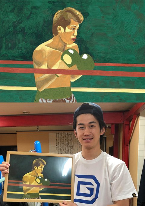 4 41 宮田ボクシングジムのスケールの大きな若手の南野楓也(ふうや)選手のイラストが出来上がったので今日ジムでご本人に渡してきました。 楓也選手はとても喜んでくれて、これで次の試合に必ず勝つと約束してくれました。 #南野楓也 #イラスト #宮田ジム #ボクシング 23/04/15 20:59