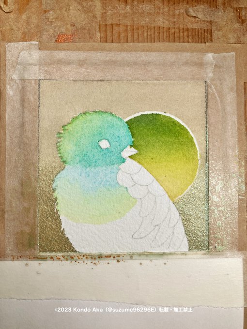 0 1 _φ(・_・ ケツァール完成ー!✨ ヒヨコかな…??かわいい…(かわいい) #透明水彩 23/07/15 00:44
