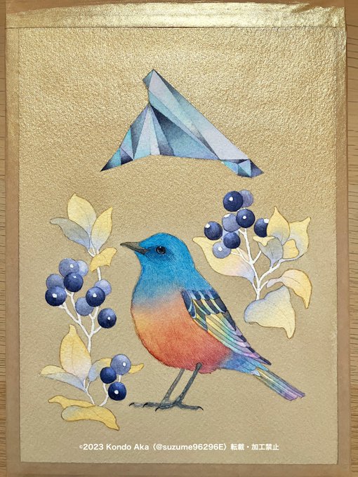 0 1 サンコウチョウをどう描いていたかな…と久々に見たくなって引っ張り出してみた2010年位?のB2の絵。 この絵のサンコウチョウは2度目に描いたもの。今から13年ぶりに3度目のサンコウチョウを描く… #透明水彩 23/06/02 16:38