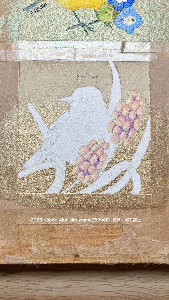_φ(・_・ 装画全体🦅🕊✨B3木パネにアルシュ。背景の濃淡グラデにも意味がちょっとありますふふふ。 #透明水彩