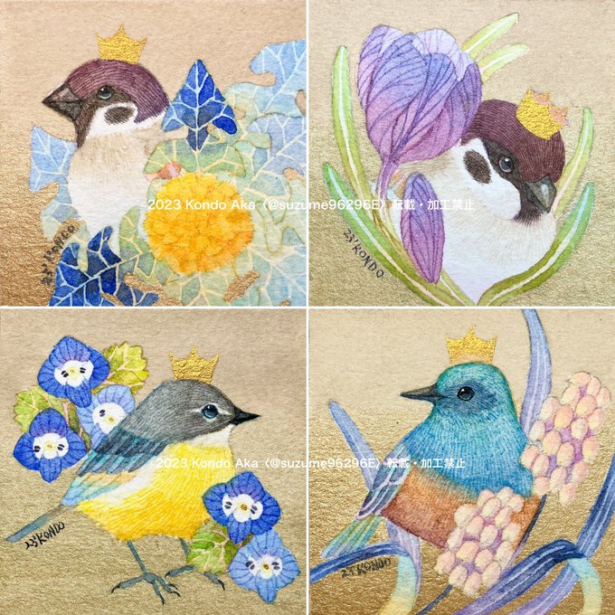 0 4 _φ(・_・ ケツァール・スズメ・カノコスズメ・スズメ #透明水彩 23/07/14 17:34