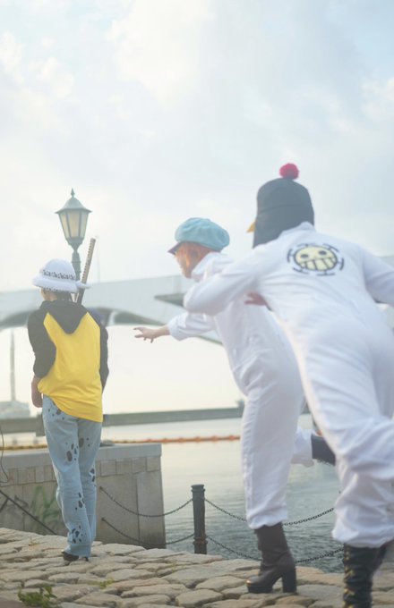 ⚠︎︎コスプレ/cosplay ONE PIECE/ハートの海賊団 「「待って、キャプテン!!!」」 🐯→むーちゃん 🐧→りぐちゃん 🐬→すずめ 📸→くまを。さん #アコスタ岸和田カンカン #ブッくま〜ク
