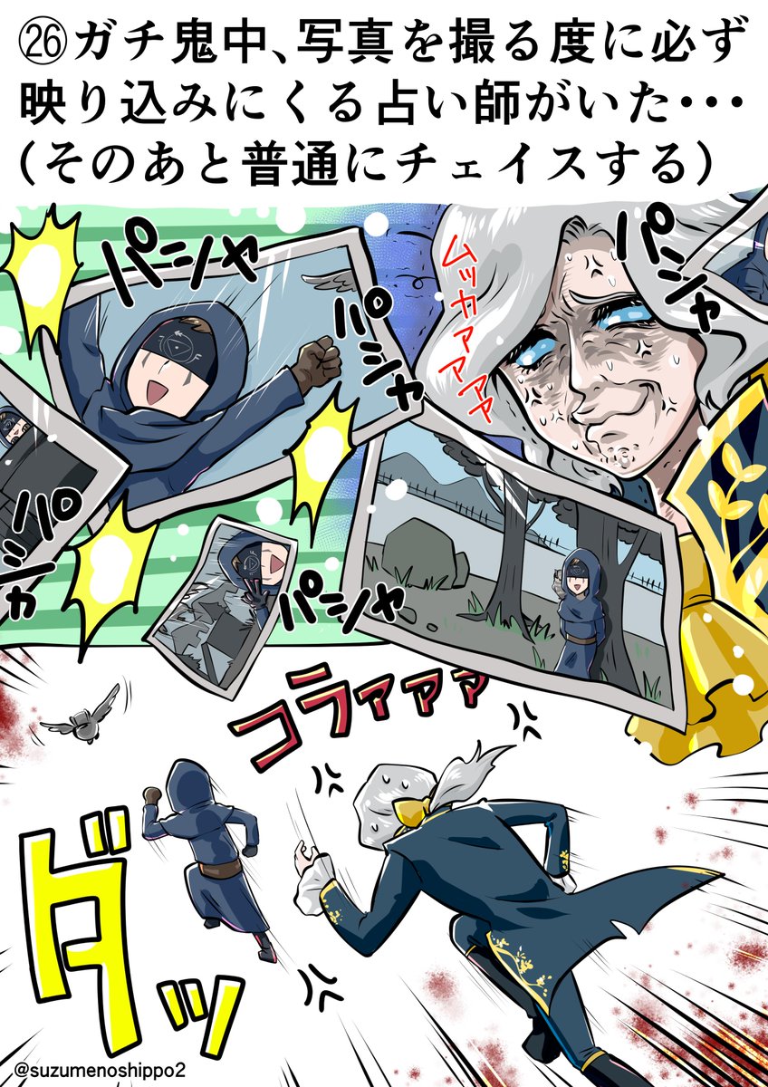 2223 8302 🌸第五人格体験談🌸 ㉖ガチ鬼中、写真を撮る度に必ず映り込みに来る占い師にいた・・・(そのあと普通にチェイスする) 情報提供︰匿名希望さん 19/09/08 19:56