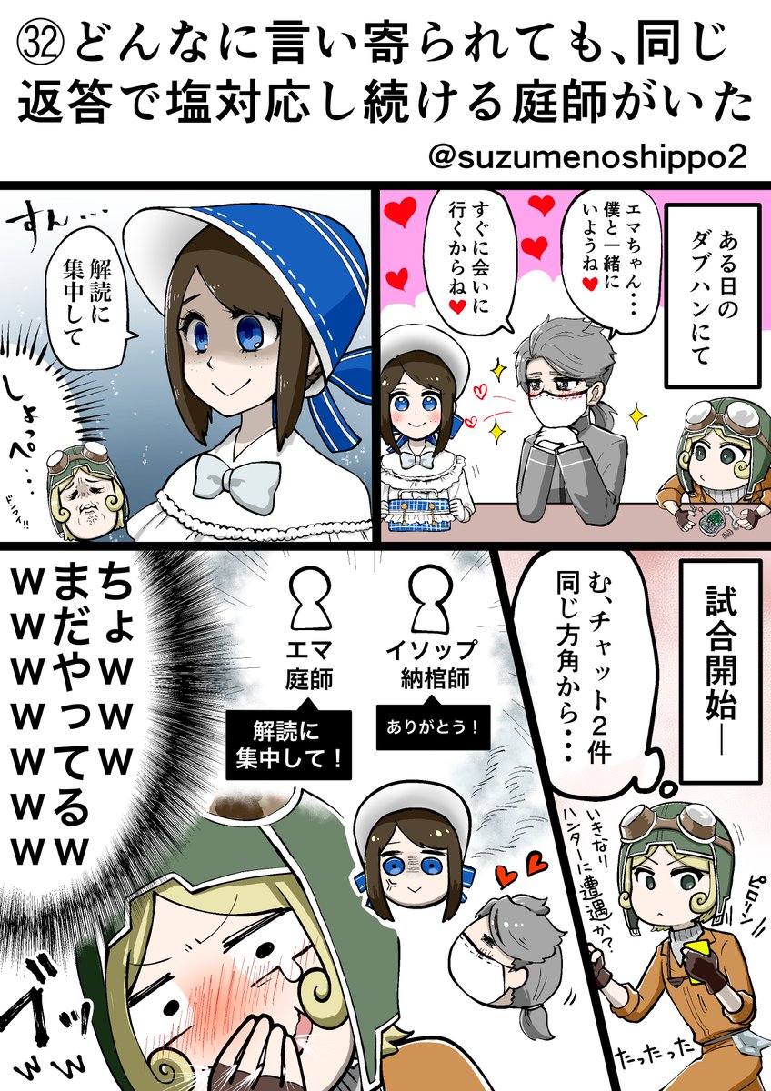 このお方は医師という職業をご存知なのだろうか…? いや、基本的に二回叩かれたらダウンするよって教える方が先かな…??botかと思ったぜ… #第五人格