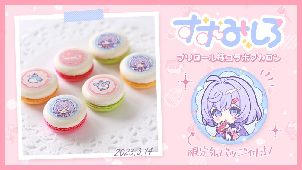 ˗ˋˏ すい〜となお知らせ ˎˊ˗ お誕生日記念にすずみしろのマカロンが発売✨ 購入特典の限定缶バッジ付きです🎁 ぜひ召しあがってくださいね! ▽販売期間 〜2023年10月20日 ▽ご購入はこちら priroll.jp/shopbrand/ct98…