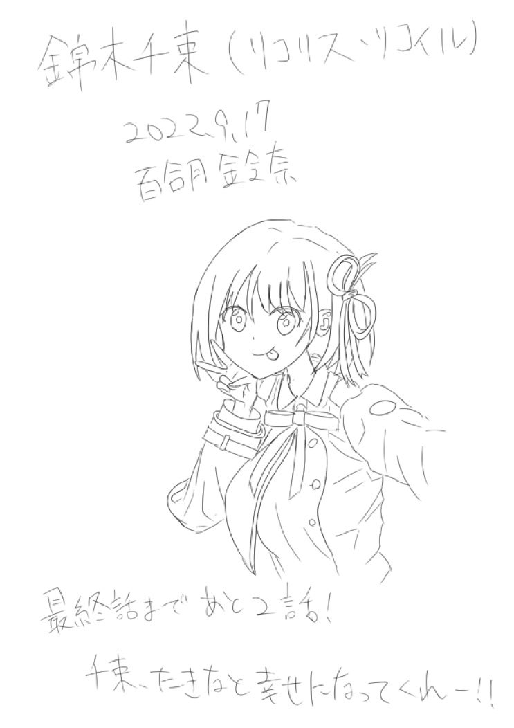#鈴奈とアリスの部屋 #鈴奈のお絵描き修行 #100日チャレンジ 60日目✨ アリス/鈴奈 〈アニメもラストスパート、だね✨〉 「だよー! ちさたき、幸せになってくれーっ!」😌✨ 〈それを祈るばかりだね✨〉😌 千束、難しい……😅 #リコリス·リコイル #リコリコ