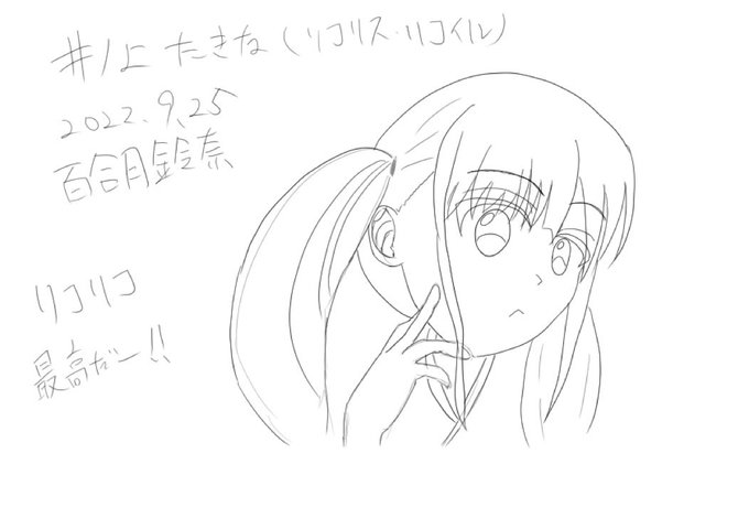 #鈴奈とアリスの部屋 #鈴奈のお絵描き修行 #100日チャレンジ 66日目✨ 鈴奈/アリス 「まだまだ冷めぬリコリコ熱!✨ てことで、たきなっ!✨」 〈しばらく続きそうだね♪✨〉☺️ 「『サムライメイデン』とか『防振り2』とか、気になるものは多いけれどね♪✨」☺️ 〈『水星の魔女』も、だよね♪✨〉