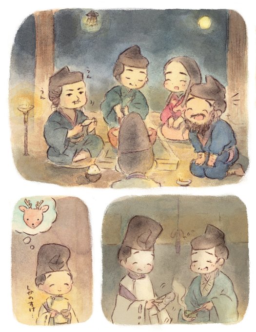 284 1227 #鎌倉殿の13人 第34話 和田殿主催の 心も体も温まる鹿鍋パーティー、 心に留めておきたい良いシーンでした🥲 恋したせいかうまく火が消せなかった義時君。 実朝公が火を扇いで消してあげた時の 二人の自然な笑顔が素敵でした☺️ #殿絵 22/09/11 19:05