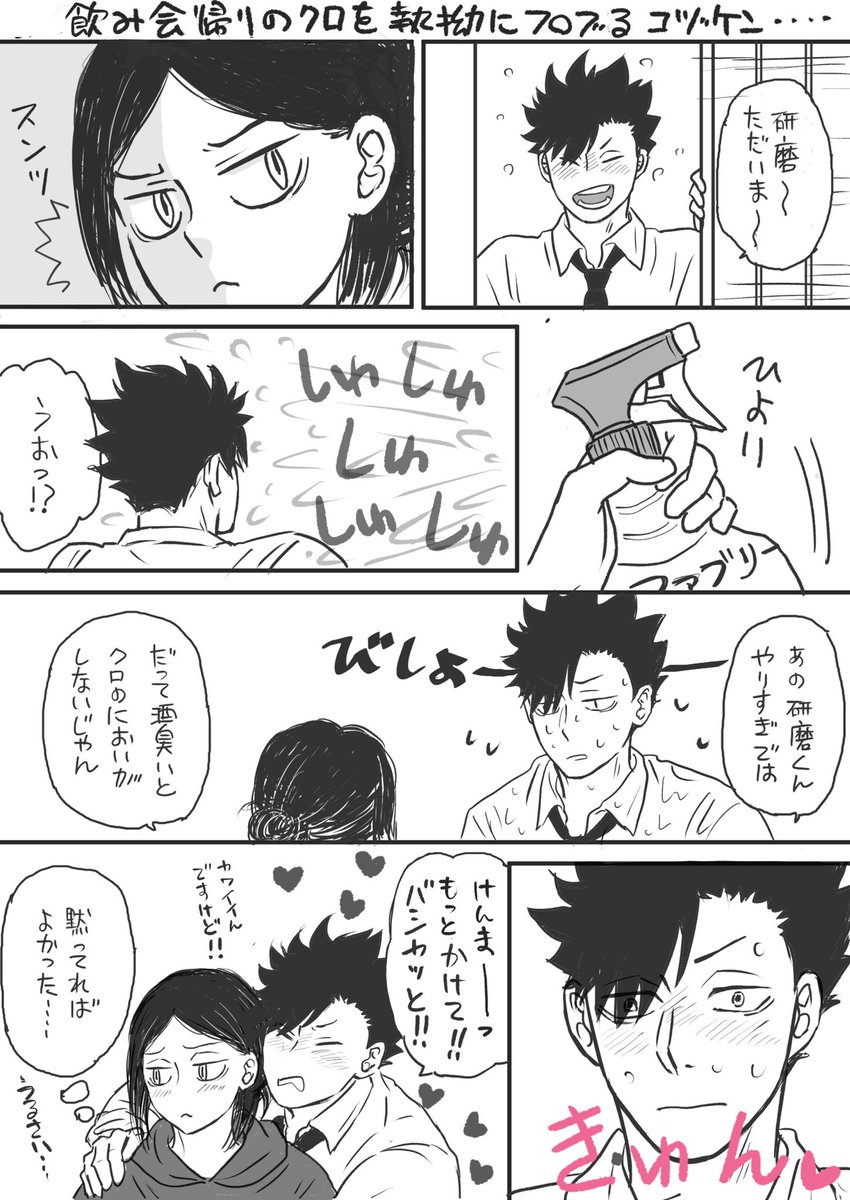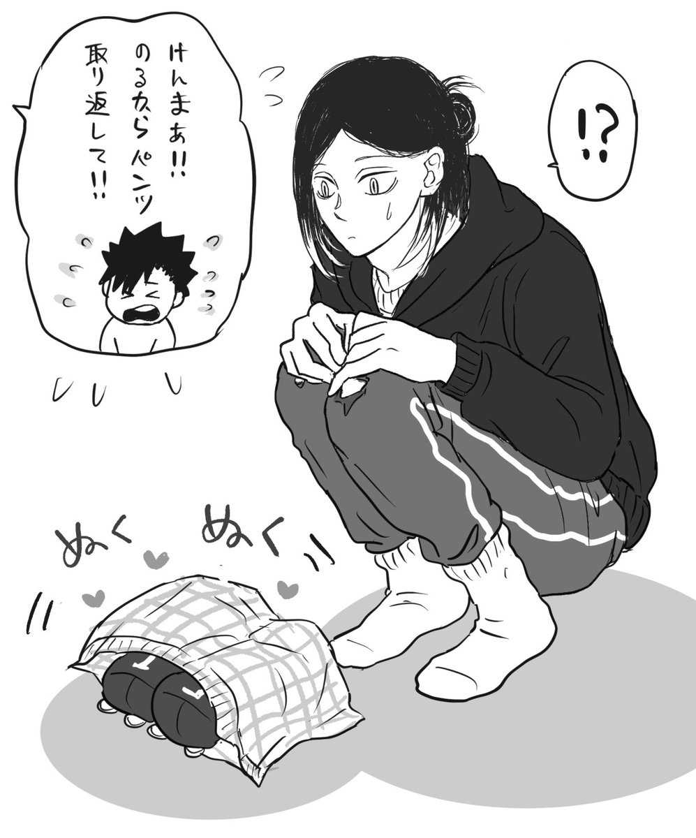#黒研版深夜の真剣60分一本勝負 お題「かえして」に遅刻参加させていただきます。すみません本当は別のキュンとした(?)黒研ネタを考えていたのだけど時間的に難しそうだったのでのるネタに走りました笑 風呂中の黒のパンツがのるに強奪されたようです!??😚💕