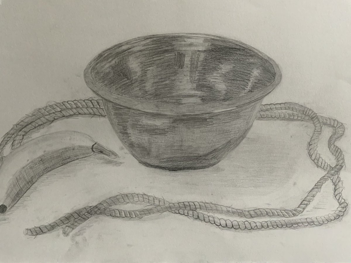ボウルとバナナとロープ 短時間だったからかボウル全然描きこめてない、、、 #絵描きさんと繫がりたい #デッサン