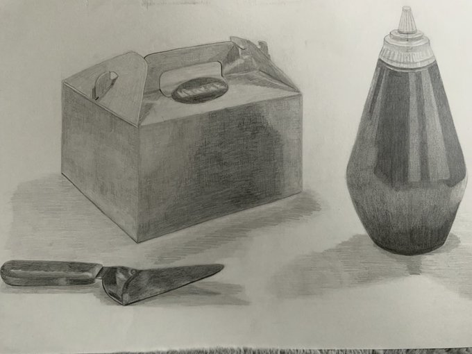 2 3 ケーキの箱とケチャップ的な何かと土をこう…あれするやつ #デッサン #絵描きさんと繫がりたい 23/05/27 19:53