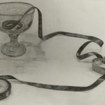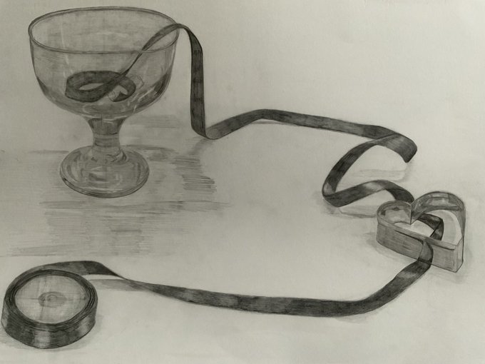 ワイングラスとリボンとハートの型 #デッサン #絵柄が好みって人にフォローされたい #絵描きさんと繫がりたい