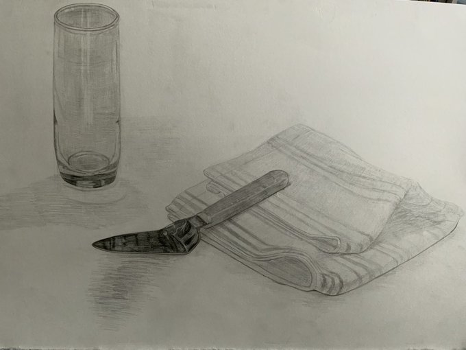 1 5 ガラスのコップとタオルと土をなんかするやつ #デッサン #絵描きさんと繫がりたい #絵柄が好みって人にフォローされたい 23/06/10 06:48