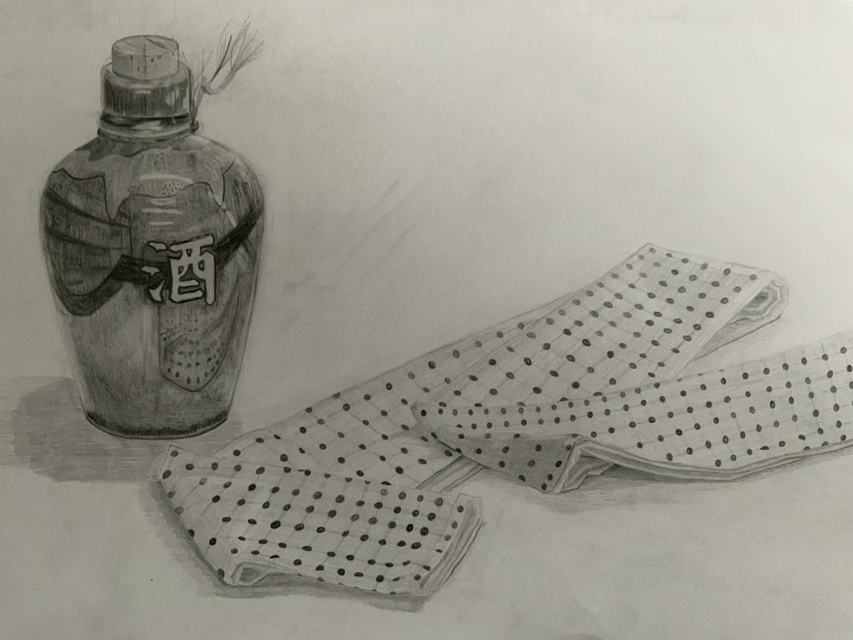 1 7 酒瓶と手ぬぐい 温泉っぽいですね #デッサン #絵描きさんと繫がりたい #絵柄が好みって人にフォローされたい 23/06/13 20:42