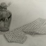 酒瓶と手ぬぐい 温泉っぽいですね #デッサン #絵描きさんと繫がりたい #絵柄が好みって人にフォローされたい