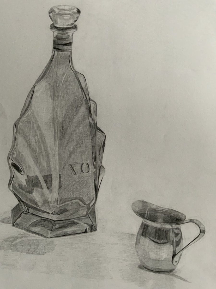 ガラス瓶とコーヒーのやつ 瓶が謎にでこぼこしてて大変でした #デッサン #絵描きさんと繫がりたい