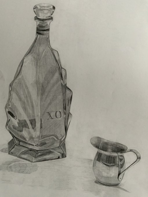 0 6 ガラス瓶とコーヒーのやつ 瓶が謎にでこぼこしてて大変でした #デッサン #絵描きさんと繫がりたい 23/06/16 06:28
