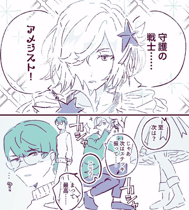 アメジストたん化した同い年の男&それを喜ぶ後輩を通りすがりに信じられないものを見るような目で見ている男の図