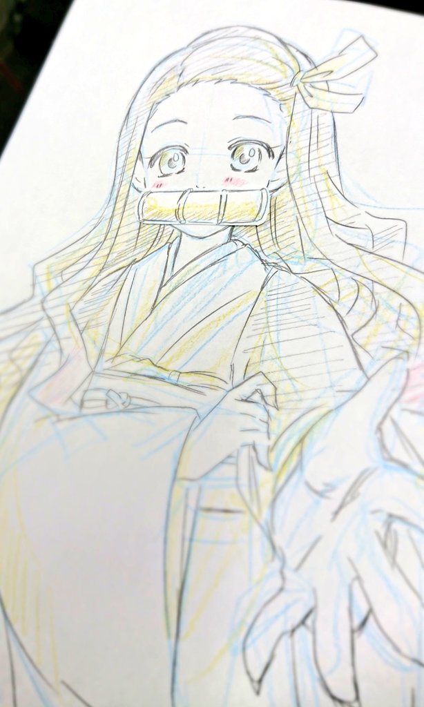 鬼滅の刃にハマる娘に描いた即席禰豆子☺️ アナログで脱着可能な竹を作ったところが母の小さなこだわり…(笑)