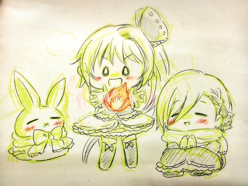 『私の火でみんなを温めてあげるわ!!』 ラナンちゃんに温めてもらい隊…🐰💧🔥 #ゴ魔乙ファンアート
