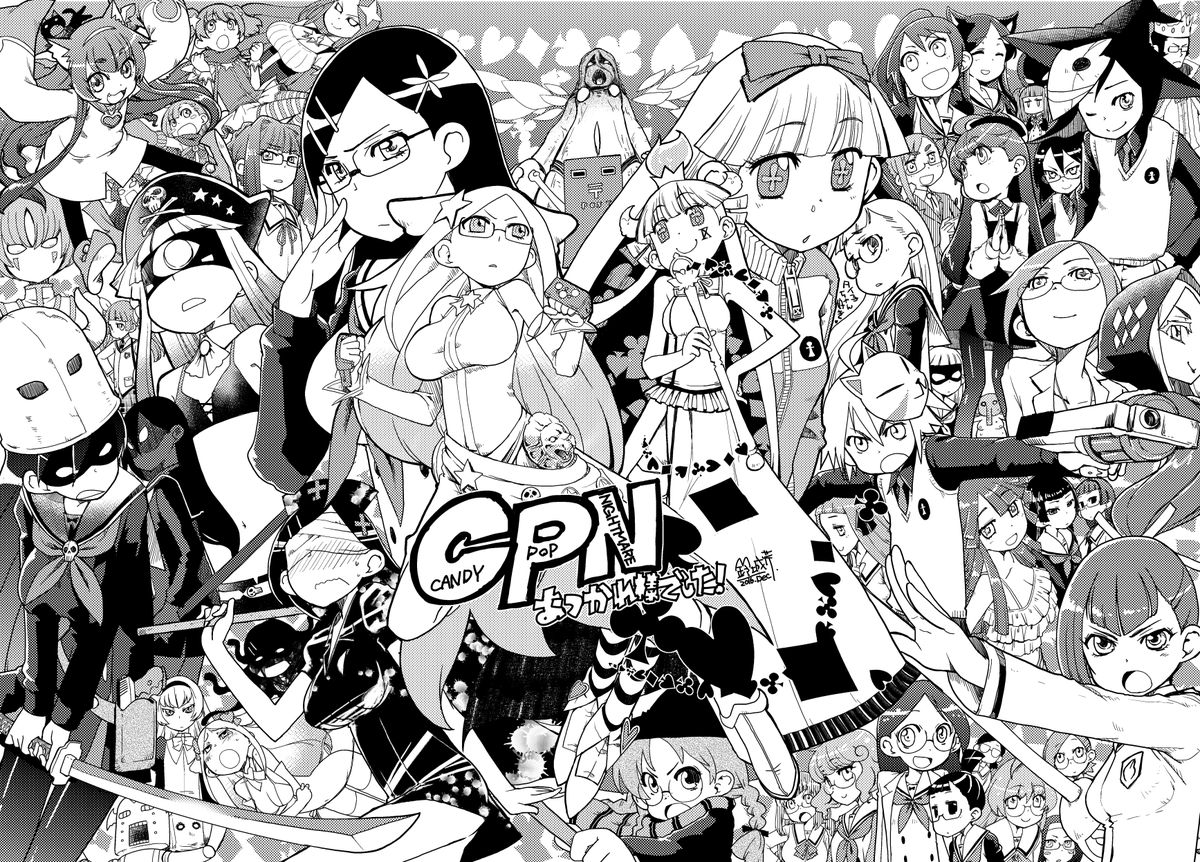 これに次ぐのがきらら展に出した「看板娘はさしおさえ」のイラスト早潮家+作中全衣装版の十世ちゃんかな…モノクロだとひすでーさんのキャンポナメ本に寄稿したこれ。もう一枚JKVS本に寄稿したやつは集合絵の中に4コマ混ぜたりした。キャラクターごちゃごちゃたくさん描くの好き。