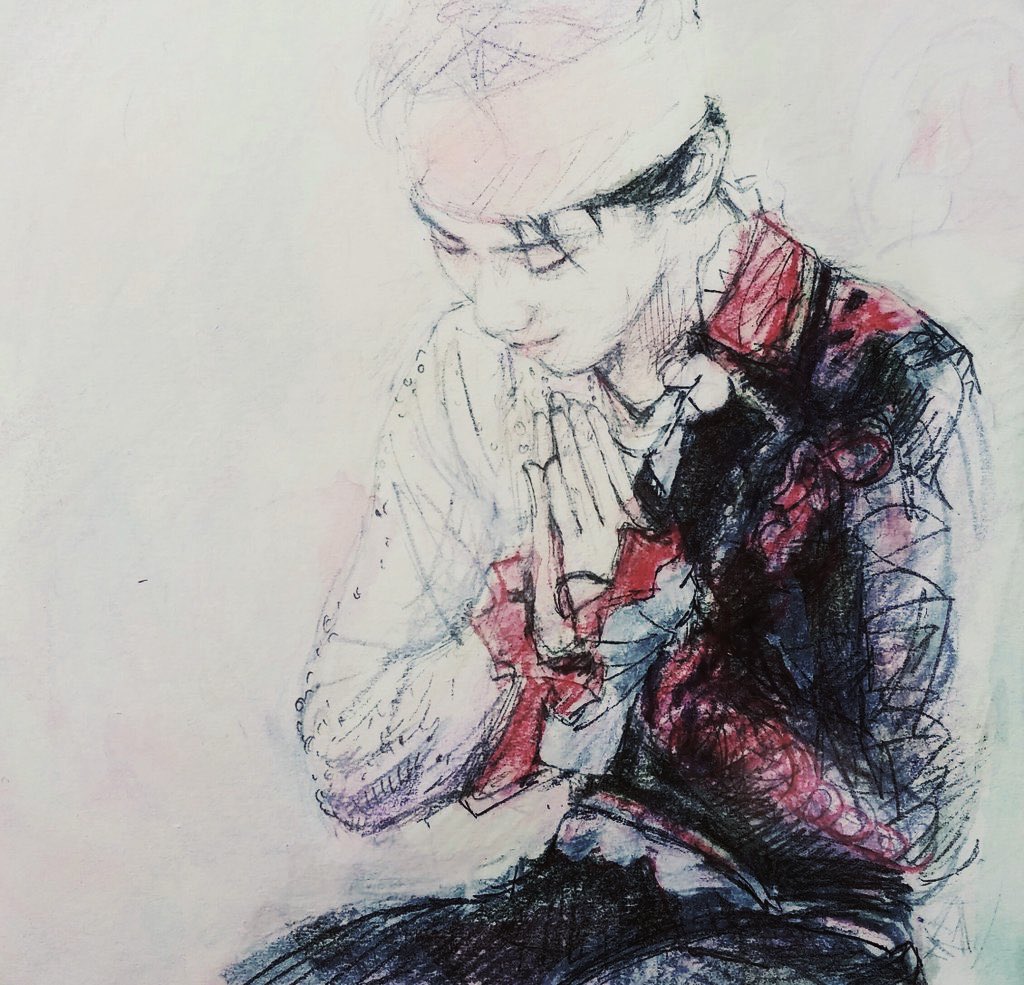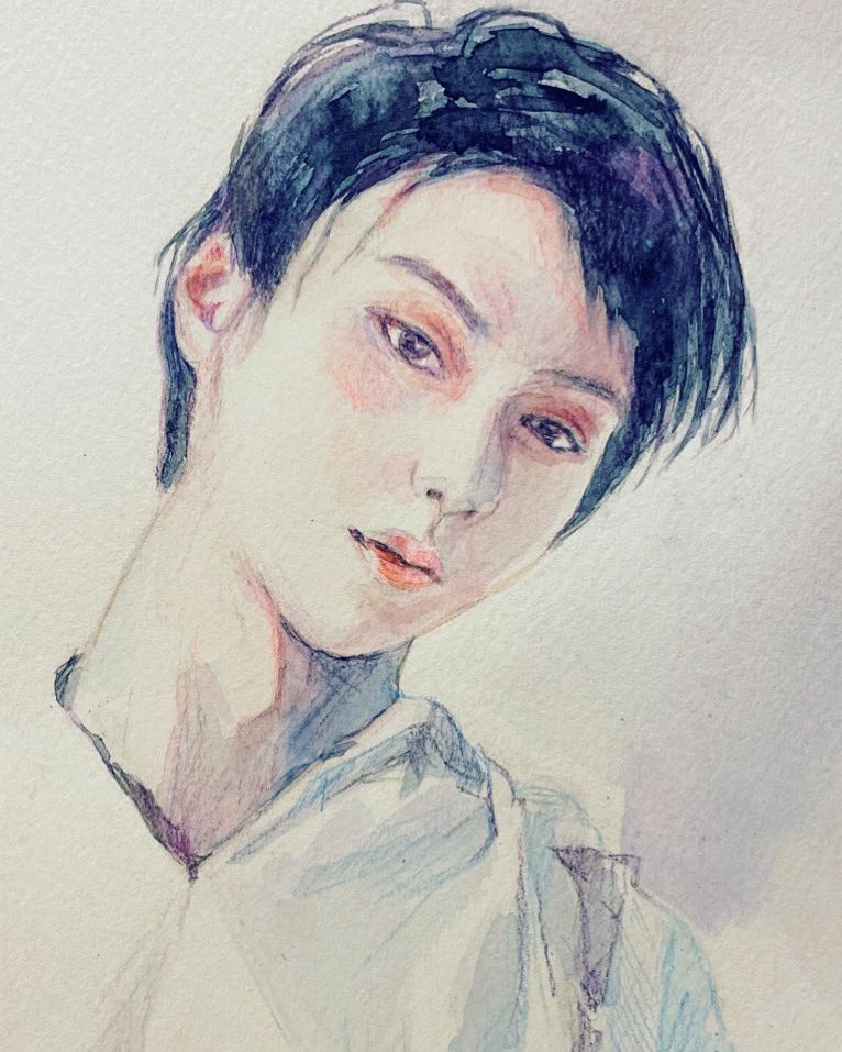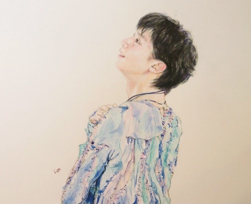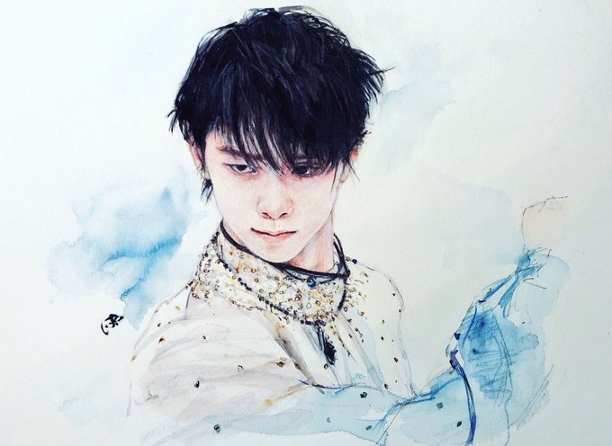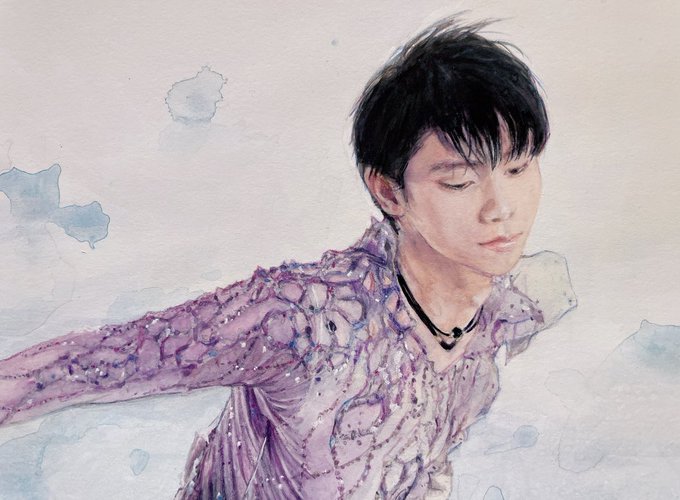 描けた #水彩 #色鉛筆 #顔彩 #YuzuruHanyu #fanart 蜷川実花さんのお写真参考