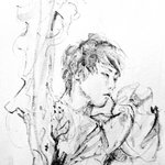 22 111 油性色鉛筆と水彩だった 濃いところは顔彩 レクイエムの横顔 22/02/26 21:03