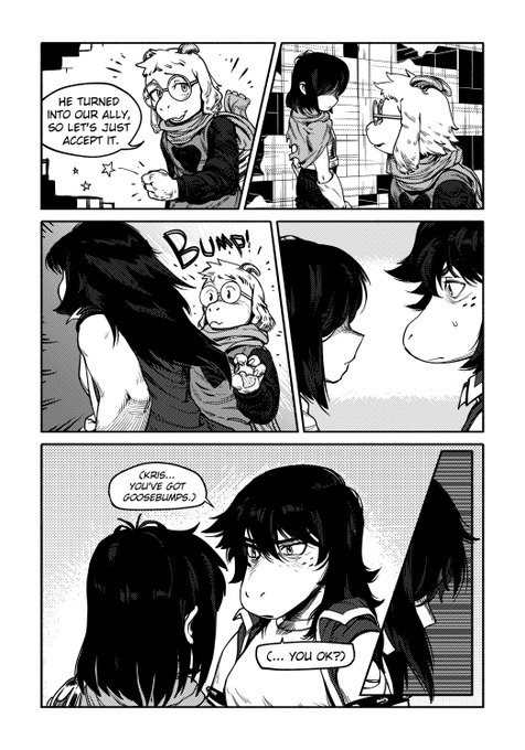 I'm making a short #DELTARUNE comic based on the scene right after the spamton fight. Here's pages 1-3.