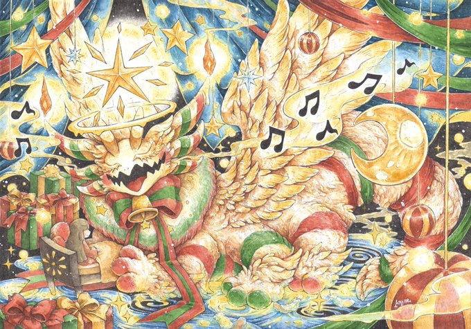 #今までで作画カロリーMAXの作品上げようぜ これですかね… クリスマスがテーマということで、楽しげな雰囲気にしたくて色を沢山使うという苦手なことにチャレンジしたので、かなり試行錯誤をしたり線画を描き直したりもしました