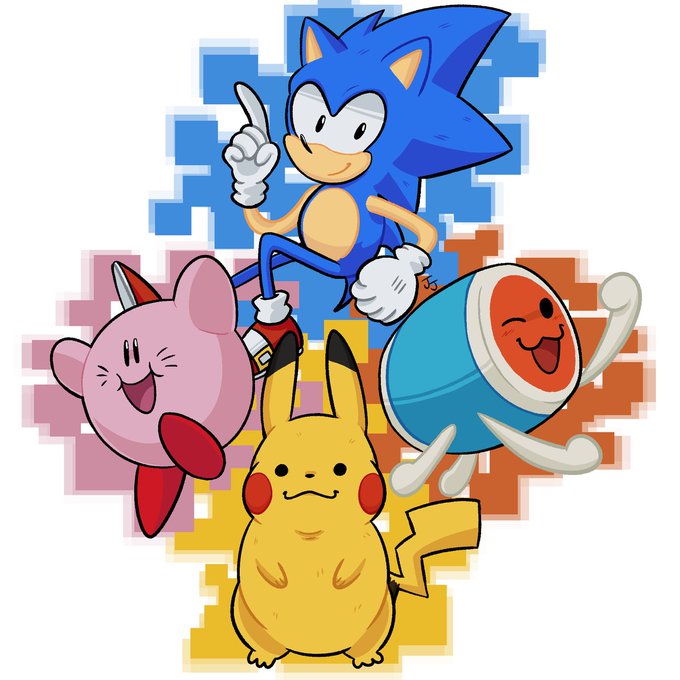 little video game friends! #digitalart #デジタルイラスト #kirby #sonicthehedgehog #pokemon #太鼓の達人 #星のカービィ #ポケモン