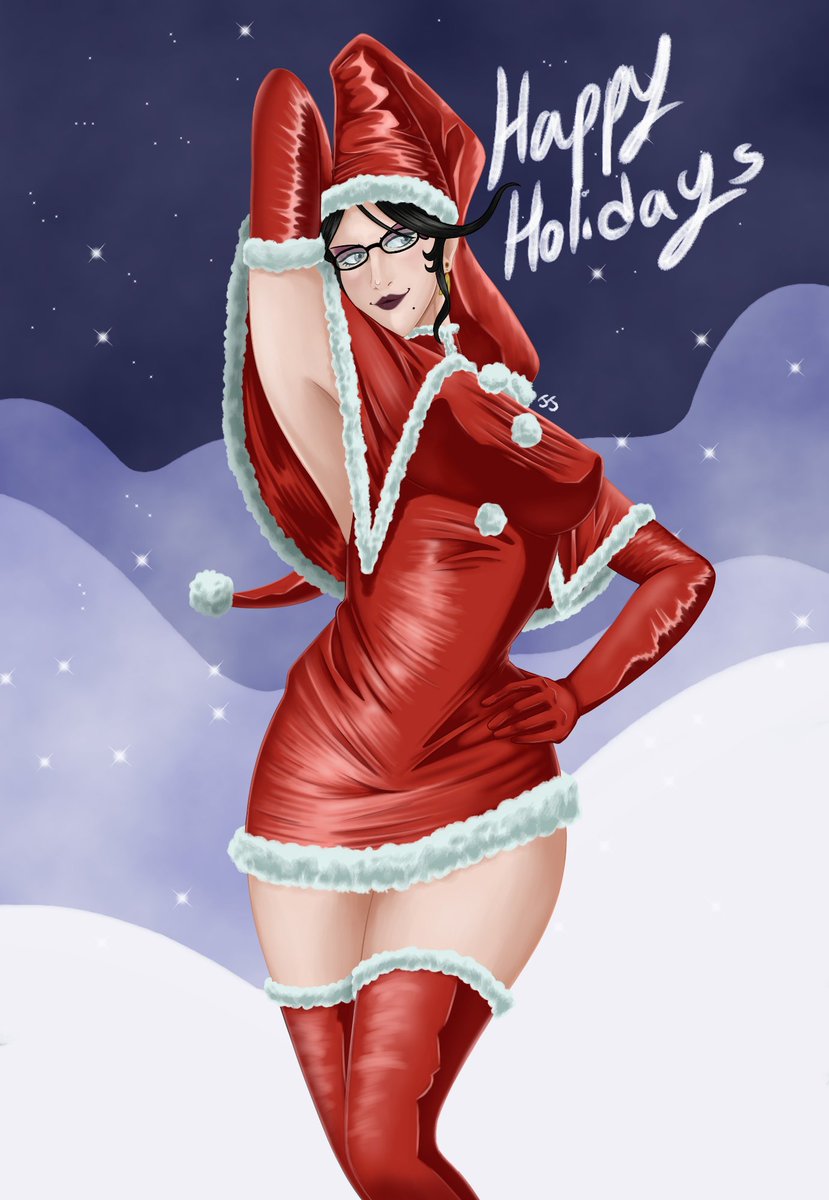 was going to wait to share these, but ITS BAYOS BDAY!! HAPPY BIRTHDAY FUNNY WITCH LADY!! i wanted to try my hand at drawing her christmas attire :^] #digitalart #bayonetta #christmas #platinumgames #デジタルイラスト #ベヨネッタ