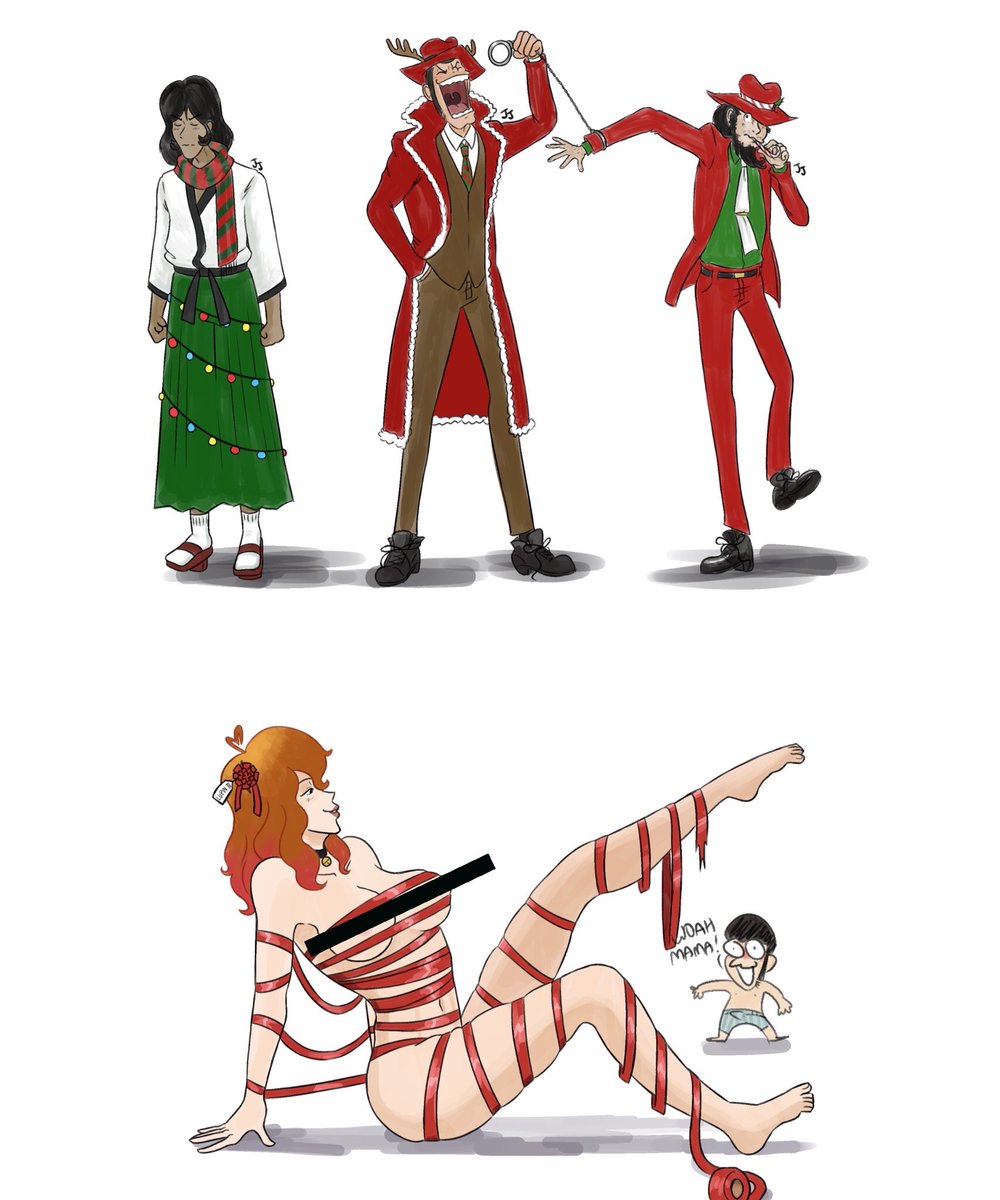 merry christmas! wanted to draw my christmas designs once more before the season ended. i like em. #デジタルイラスト #クリスマス #ルパン三世 #峰不二子 #digitalart #christmas #lupiniii #lupinthethird #fujikomine #jigendaisuke #zenigata #goemonishikawa