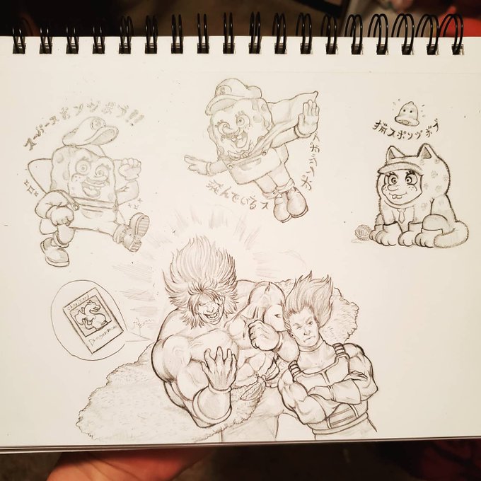 Sketchbook page Stickers and broly found an epic charizard card . #spongebob #mario #nintendo #e3 #videogame #dbz #broly #vegeta #drawingstyle #illistration #art #artist #artsandcrafts #artoftheweek #cosplay #sketch #sketchbook #drawing #muscle #fitness #comicbook #anime #manga